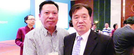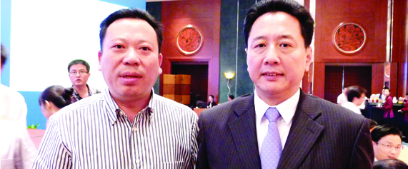 2011年8月21日在太原时任金华市副市长、义乌市市长何美华接见高仕东合影